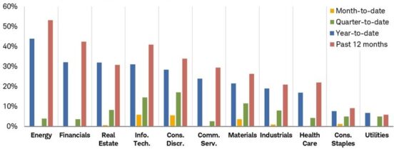 Growth stocks handily outperformed value, prompted by Big-Tech. Consumer discretionary (3.8%) led the markets, primarily on Amazon’s and Tesla’s surge, followed by IT (2.4%). Energy (5.1%) plunged in tandem with oil prices, and aided by Biden’s order to investigate the oil & gas companies for “illegal conduct” in pricing